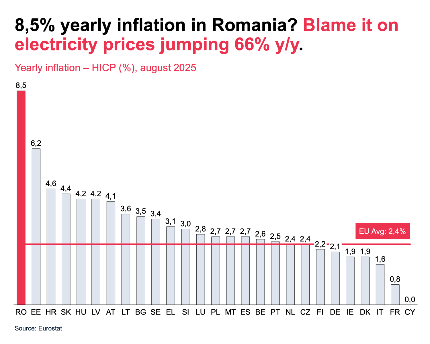 8,5% in august 2025 against the EU average of 2,4%. We can no longer be grouped with the states in the region with which we often share the position of the: